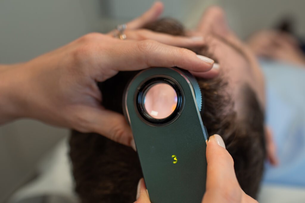 Queda intensa, afinamento dos fios, falhas visíveis no couro cabeludo e couro cabeludo sensível são alguns sinais importantes. Quanto antes iniciado o tratamento, melhores os resultados.